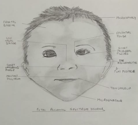 Fetal Alcoholic Syndrome(FAS) or Fetal Alcoholic Spectrum Disorder(FASD) is caused by the mother’s consumption of alcohol during pregnancy.There is no safe dose of alcohol consumption and facial anomalies associated during pregnancy is directly proportional to type of substance, time of consumption and number of time consumed.
